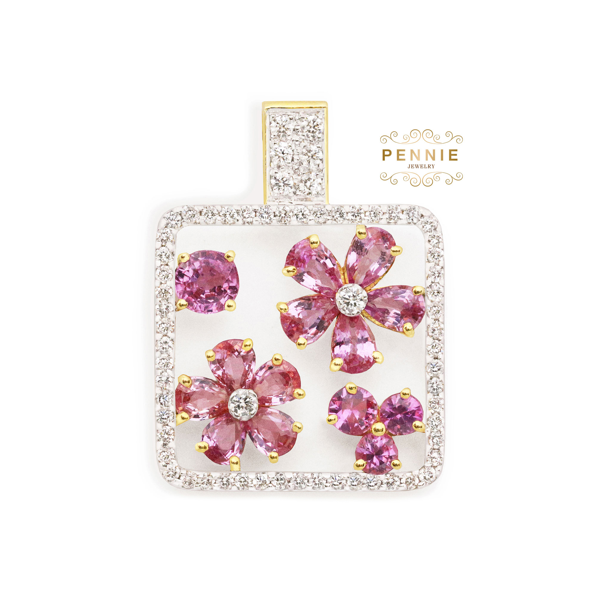 จี้พิงค์ซัฟไฟร์รูปดอกไม้
