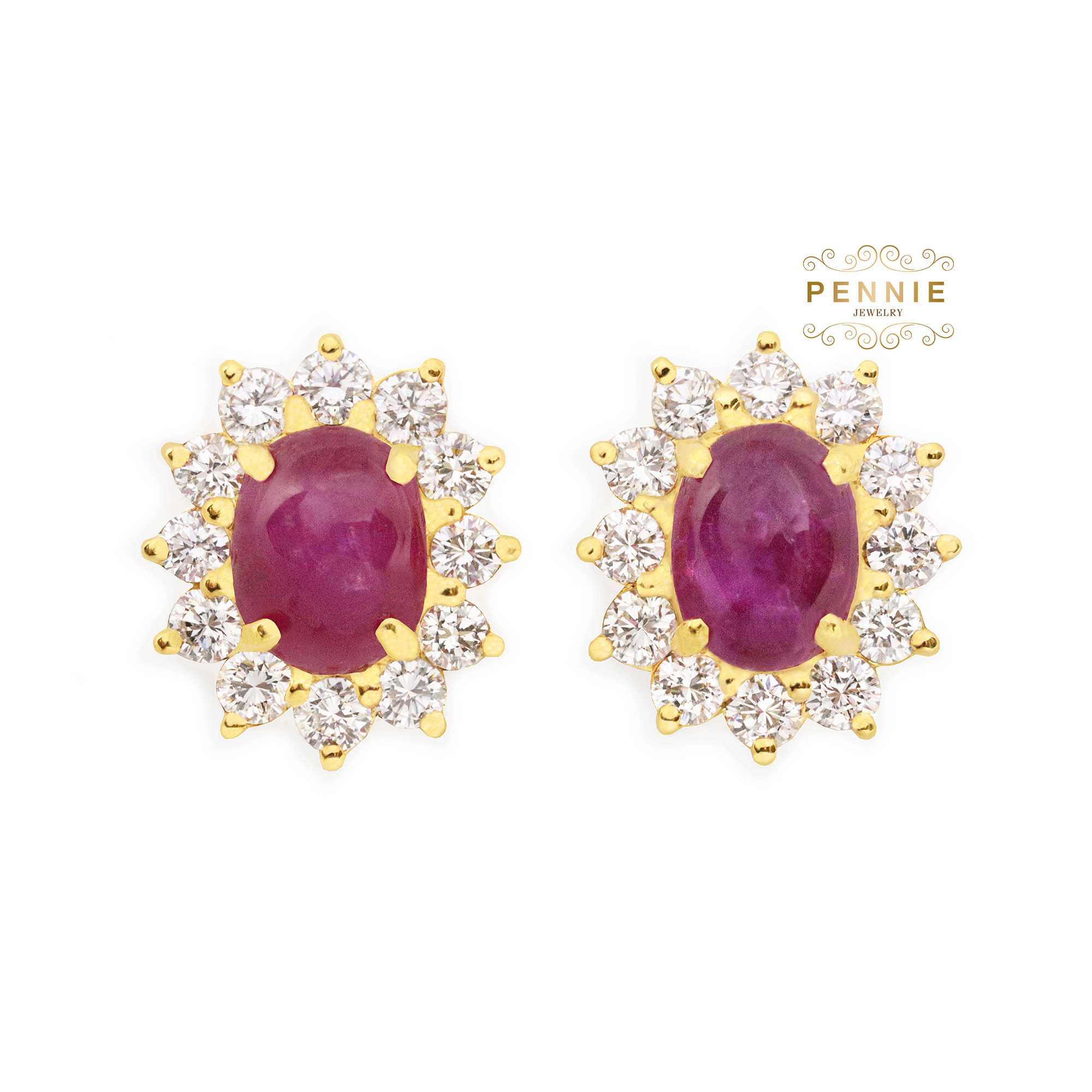 ทับทิมพม่าหลังเบี้ย2เม็ดน้ำหนักรวม3.52กะรัต เพชรล้อม24เม็ดน้ำหนักรวม0.957กะรัต ตัวเรือนทอง18Kน้ำหนัก6.35กรัม