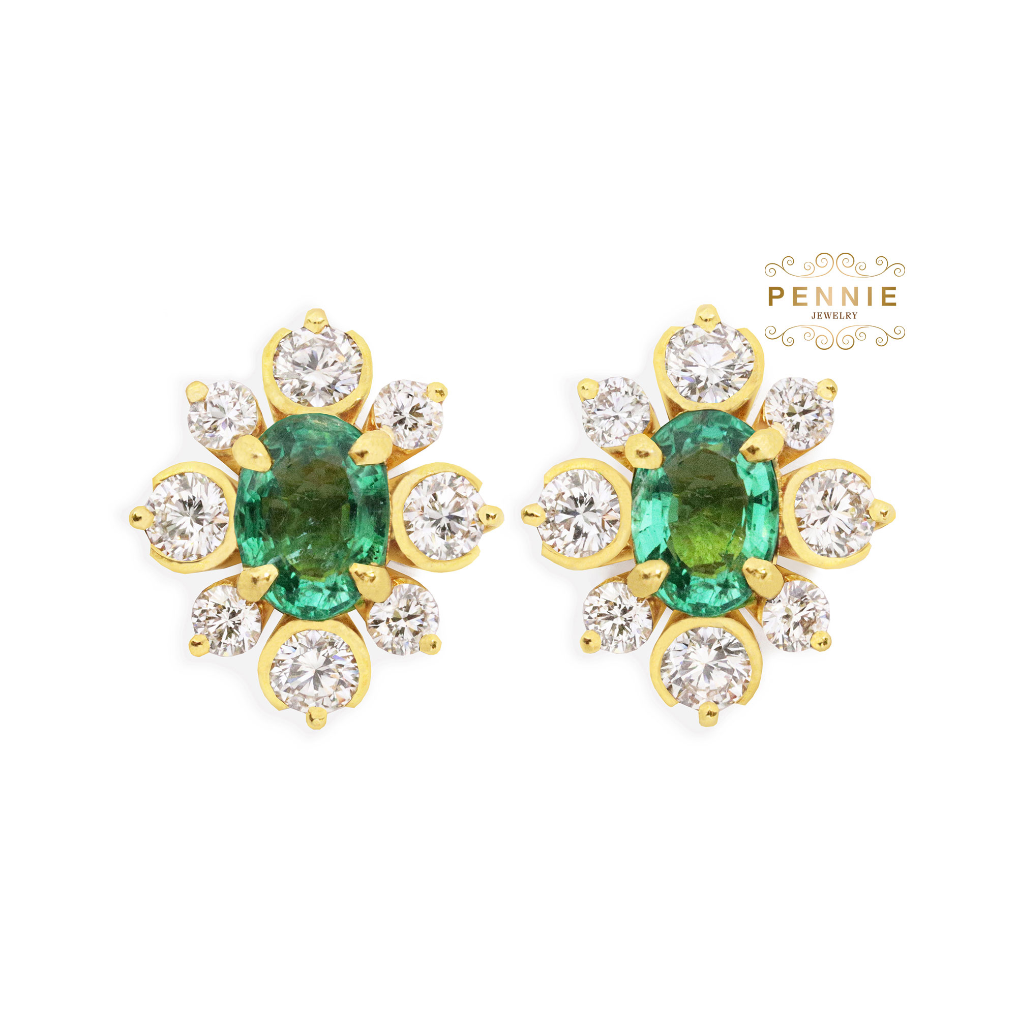 มรกต2เม็ดน้ำหนักรวม1.75กะรัต เพชร8เม็ดน้ำหนักรวม0.984กะรัต เพชร8เม็ดน้ำหนักรวม0.494กะรัต ตัวเรือนทอง90%น้ำหนัก6.89กรัม