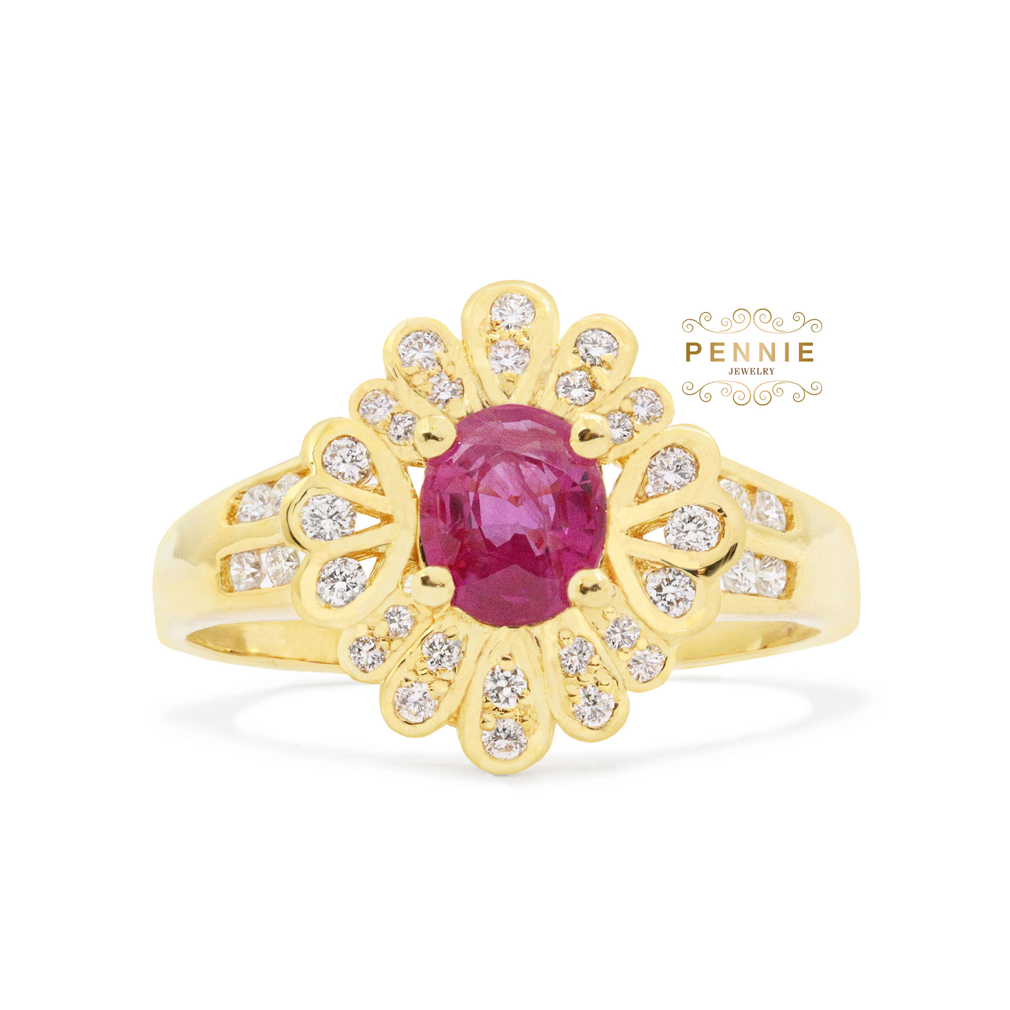 ทับทิมพม่าเจียระไนน้ำหนัก0.67กะรัต เพชร34เม็ดน้ำหนักรวม0.252กะรัต ตัวเรือนทอง90%น้ำหนัก4.04กรัม