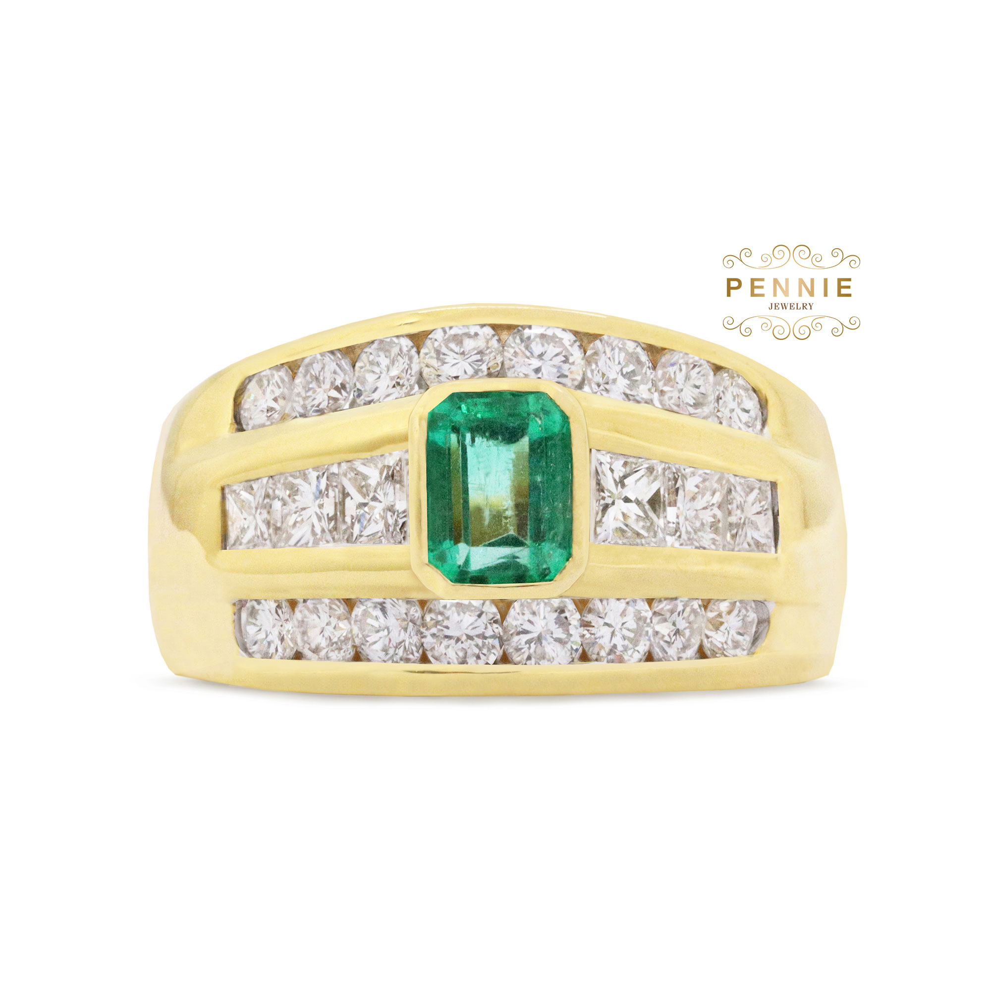 มรกต1เม็ดน้ำหนัก0.54กะรัต เพชรปริ้นเซสคัท6เม็ดน้ำหนักรวม0.51กะรัต เพชร16เม็ดน้ำหนักรวม0.83กะรัต ตัวเรือนทอง90%น้ำหนัก11.16กรัม