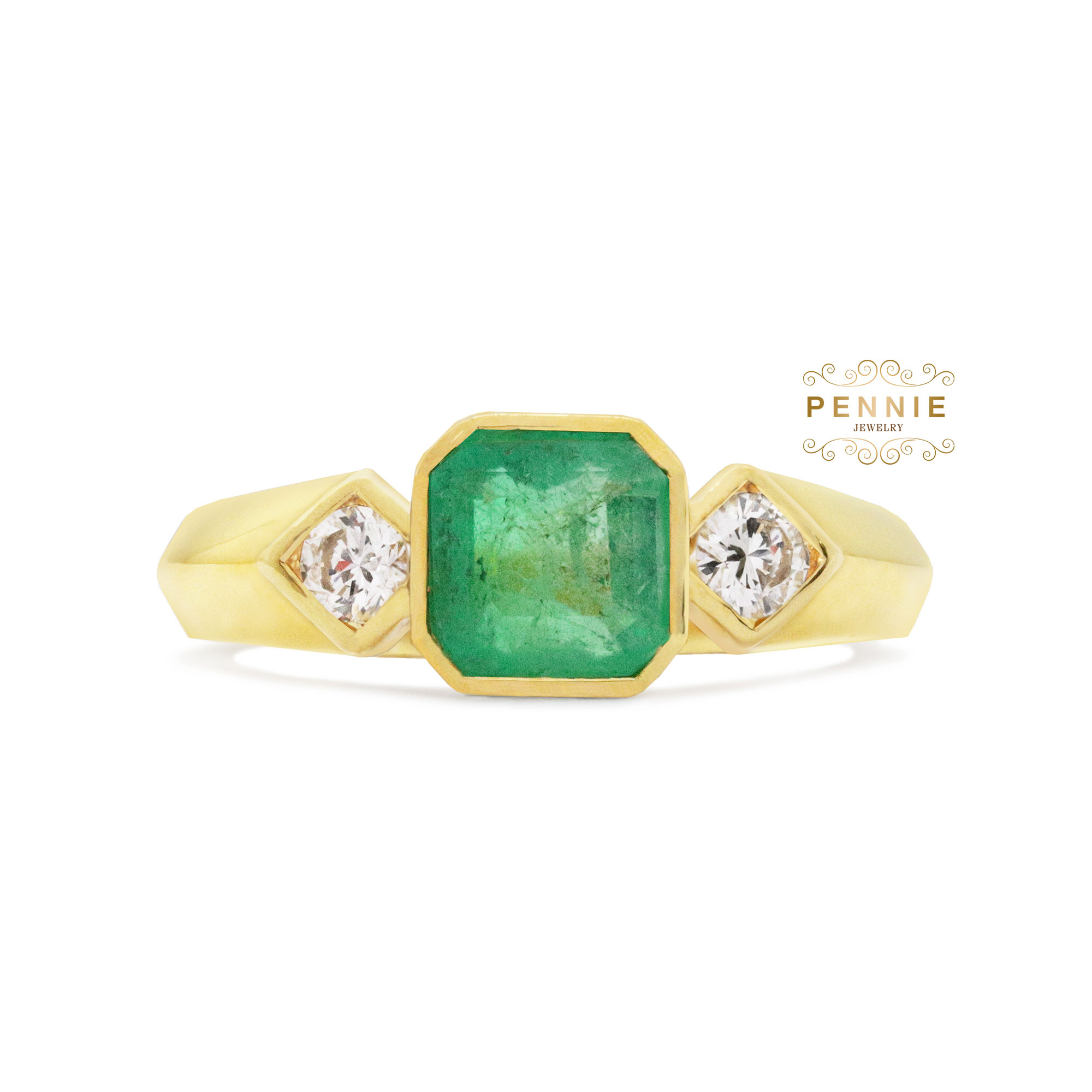 มรกต1เม็ดน้ำหนัก1.06กะรัต เพชร2เม็ดน้ำหนักรวม 0.218กะรัต ตัวเรือนทอง90%น้ำหนัก5กรัม