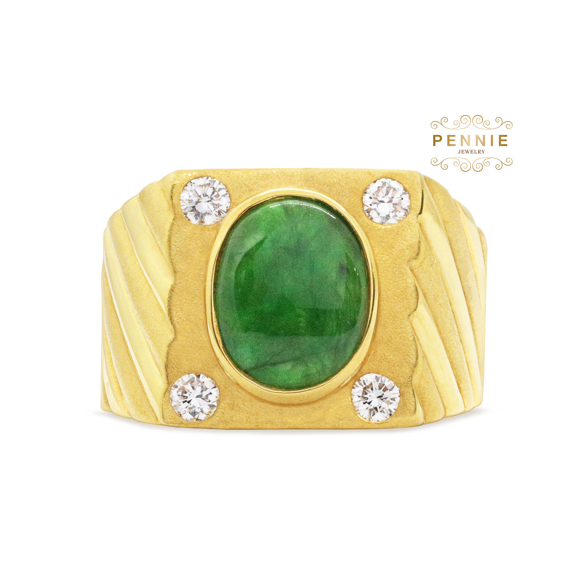 หยกพม่าน้ำหนัก2.85กะรัต เพชร4เม็ดสี97(G color)น้ำหนักรวม0.28กะรัต ตัวเรือนทอง90%น้ำหนัก15.85กรัม ไซส์แหวน57