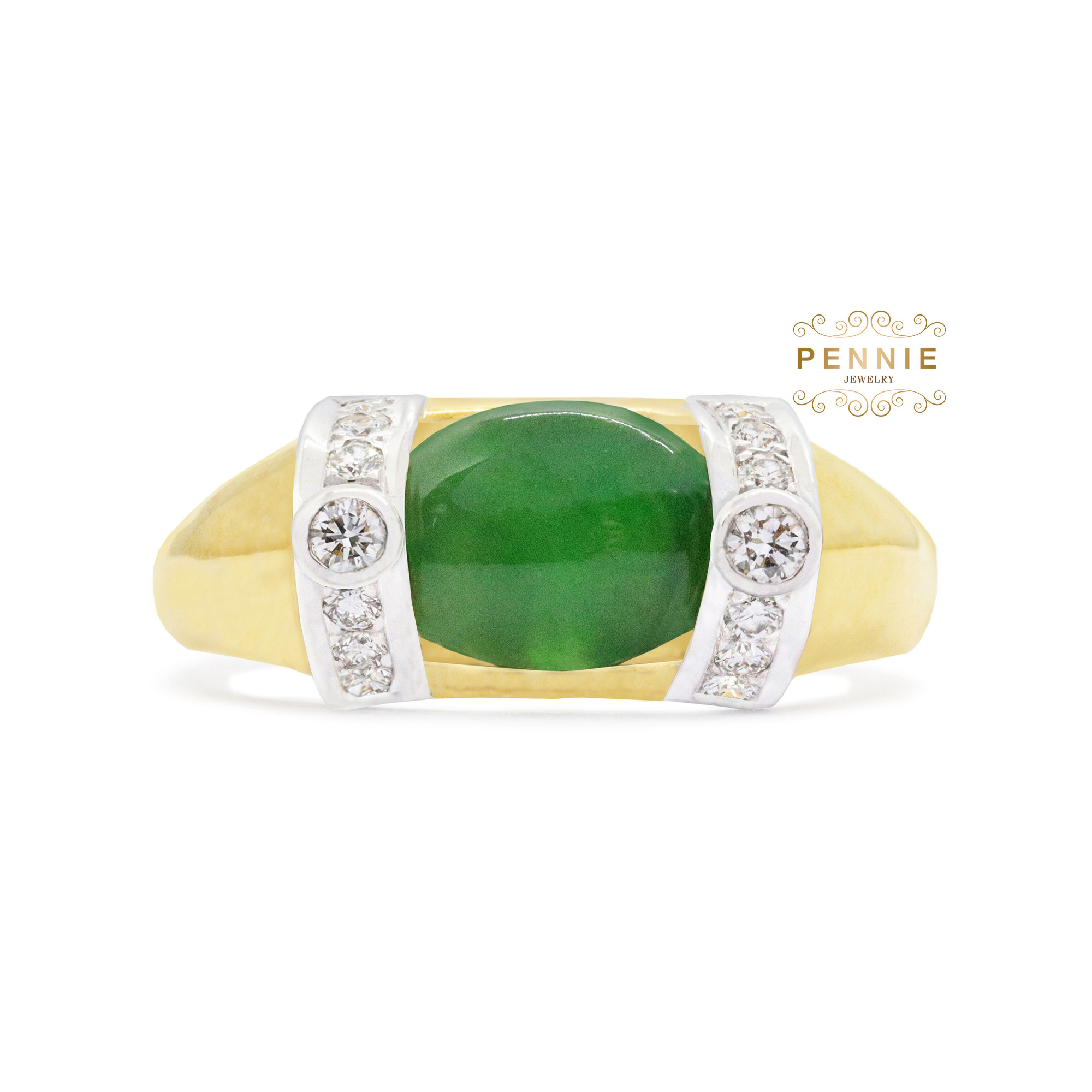 หยกน้ำหนัก2.69กะรัต เพชร2เม็ดน้ำหนัก0.11กะรัต เพชร12เม็ดน้ำหนัก0.23กะรัต ตัวเรือนทอง90%น้ำหนัก8.34กรัม
