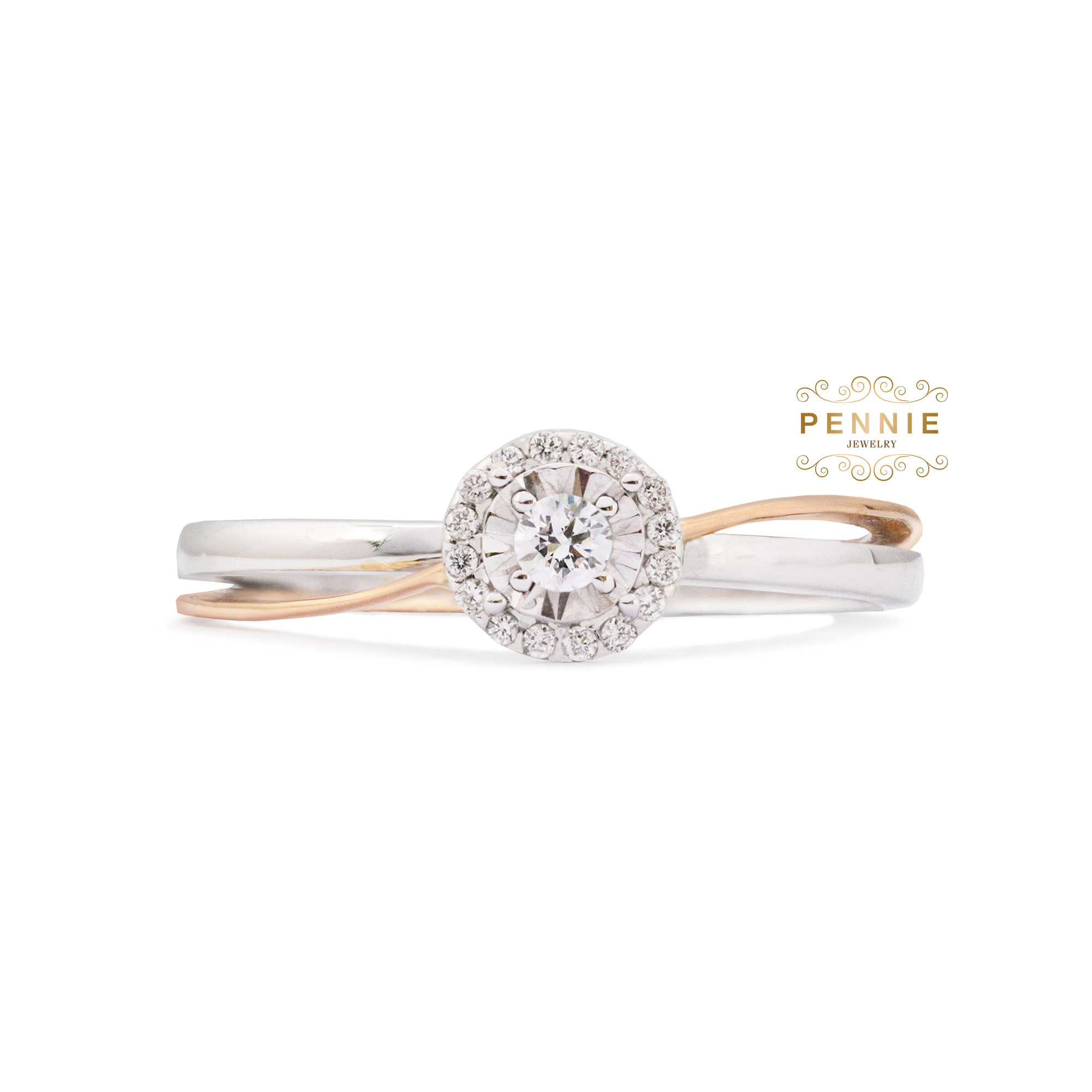 เพชรกลางน้ำหนัก0.044กะรัต เพชรล้อม16เม็ดน้ำหนักรวม0.035กะรัต ตัวเรือนทองขาวกับพิงค์โกลด์น้ำหนัก1.9กรัม