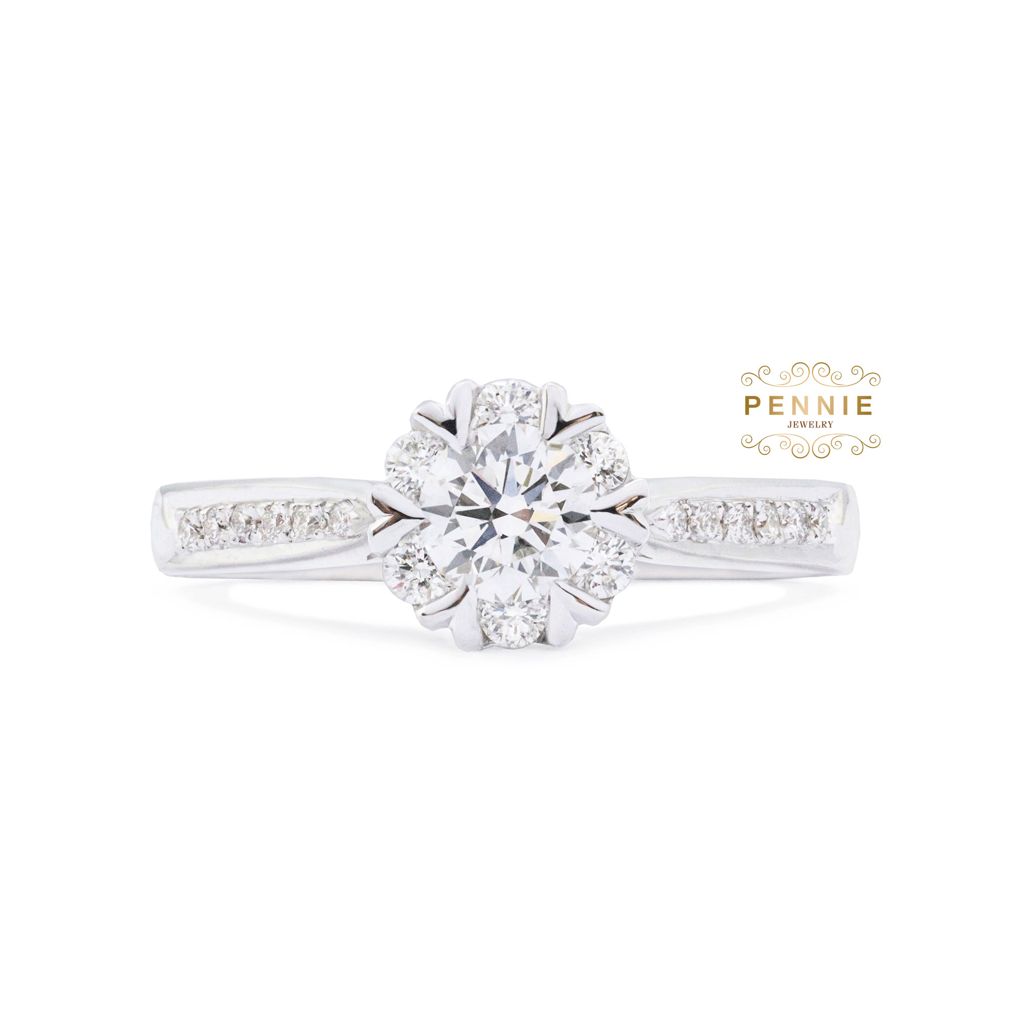 เพชรกลางน้ำหนัก0.31กะรัต ใบเซอร์GIA ความสะอาดVS2 เหลี่ยมเจียระไน3EX เพชรล้อม6เม็ดน้ำหนักรวม0.114กะรัต เพชรขาแหวน12เม็ดน้ำหนักรวม0.053กะรัต ตัวเรือนทองขาว3.0กรัม