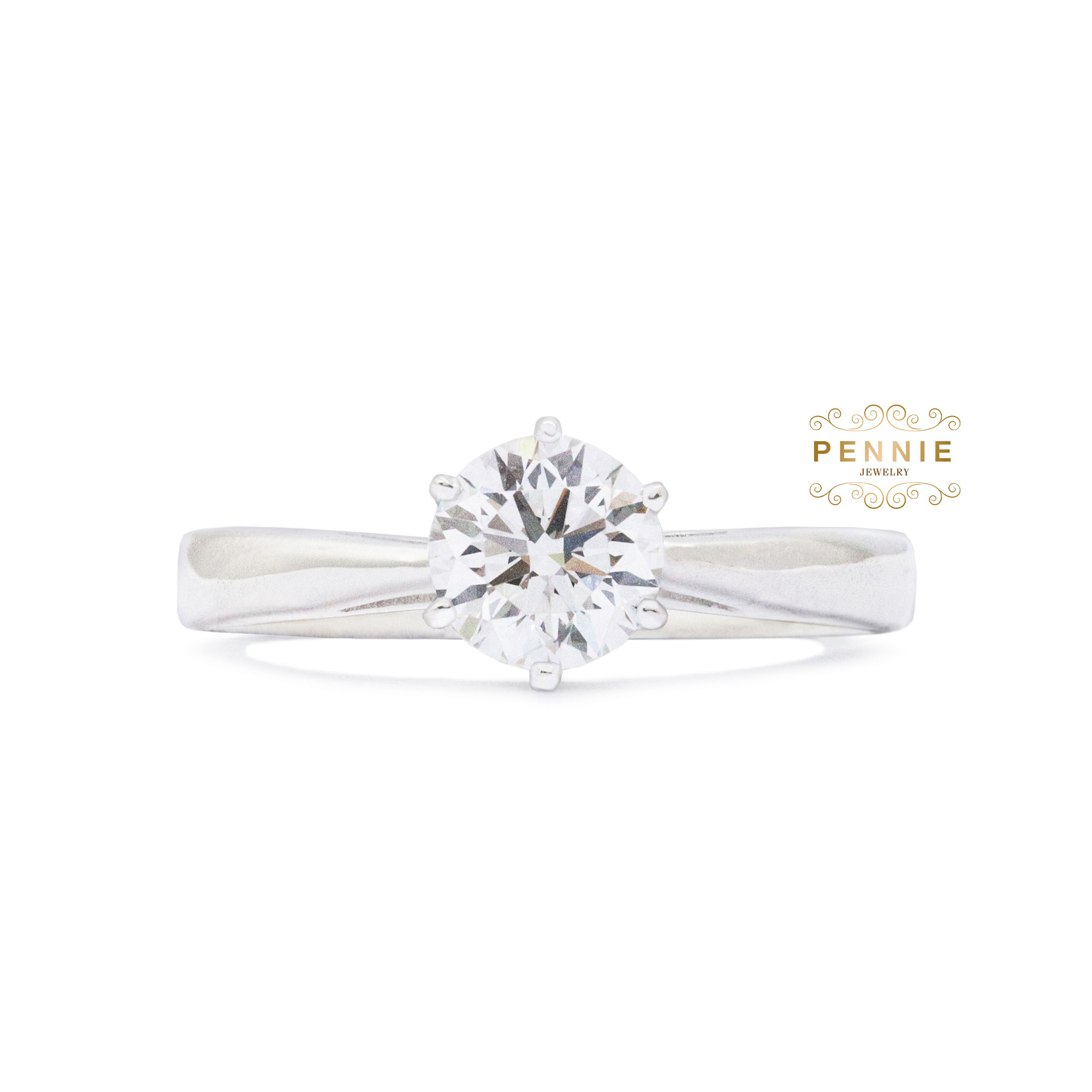 เพชรน้ำ100(D Colour)น้ำหนัก0.50กะรัต ใบเซอร์GIA ความสะอาดVS1 เหลี่ยมเจียระไน3EX ตัวเรือนทองขาว18Kน้ำหนัก2.5กรัม